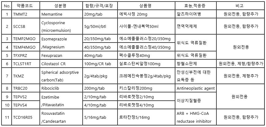 10월 1차 신약 알림입니다(상세한 내용은 첨부문서를 참고하시기 바랍니다).