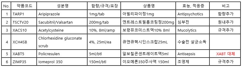 기존 알보칠콘센트레이트액100ml(XABT) 재고 소진 후 대체 예정입니다.
